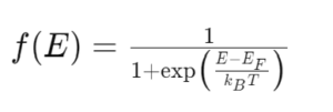The Fermi-Dirac distribution, f(E), describes the probability that an energy state E is occupied by an electron at a given temperature. It is given by: