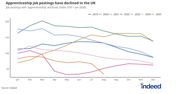 One possible factor behind the decline in apprenticeships is the end of government funding for degree-level apprenticeships for those aged 22 and over, set for January 2026. At the same time, the announcement of 120,000 additional training opportunities for young adults may shift young people’s interest toward other career options and affect perceptions of apprenticeships.